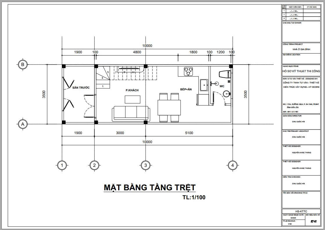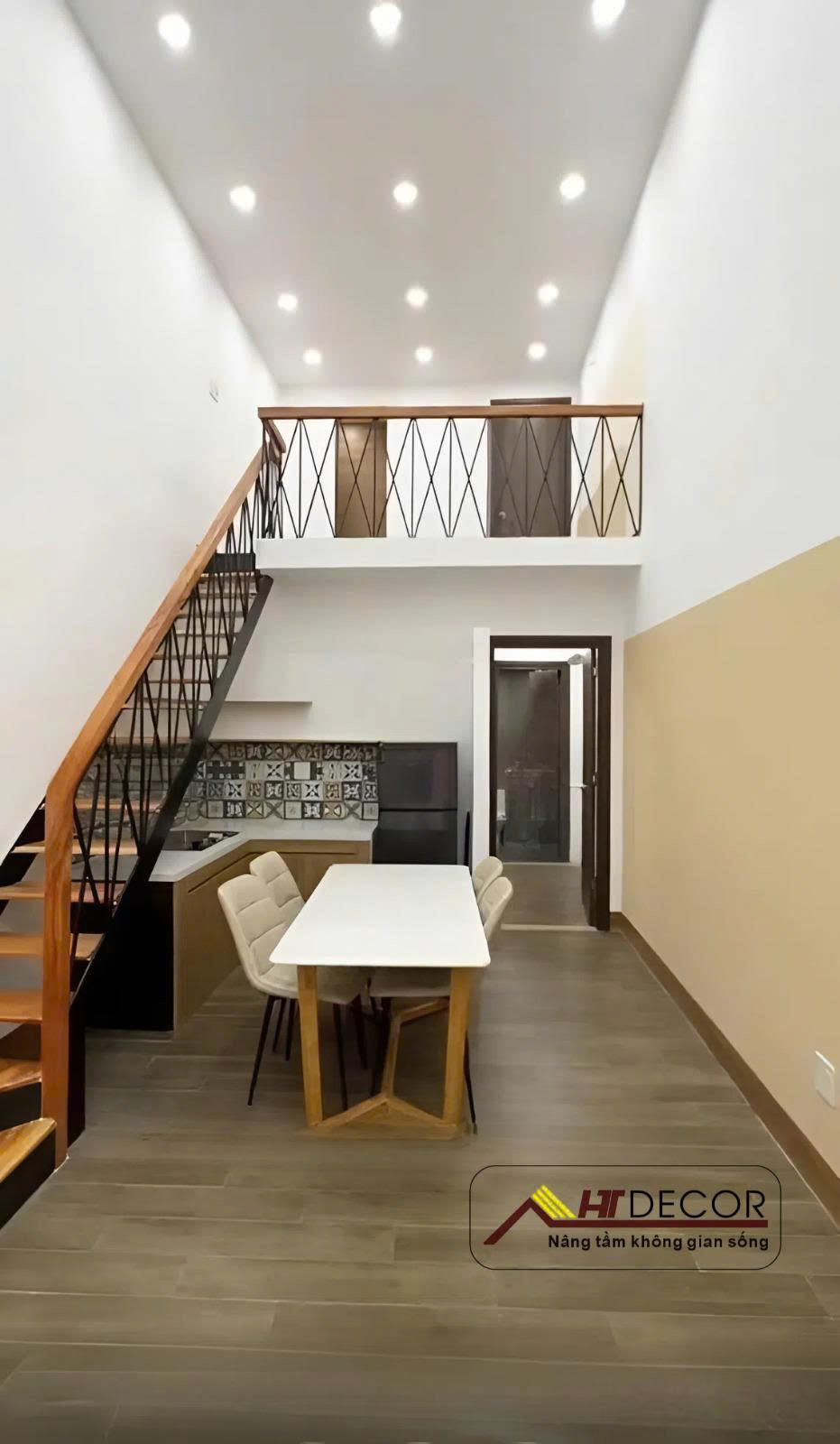Với mong muốn xây dựng một không gian sống tiện nghi trên diện tích đất khiêm tốn chỉ 35m², anh Khoa – chủ đầu tư tại đường Nguyễn Chí Thanh, phường Tân An, TP. Buôn Ma Thuột, tỉnh Đắk Lắk đã lựa chọn mẫu thiết kế nhà gác lửng hiện đại. Ngôi nhà được bố trí khoa học gồm tầng trệt với phòng khách, bếp, WC và tầng lửng có 2 phòng ngủ, đảm bảo đầy đủ công năng cho gia đình 3 – 4 thành viên sinh hoạt thoải mái.