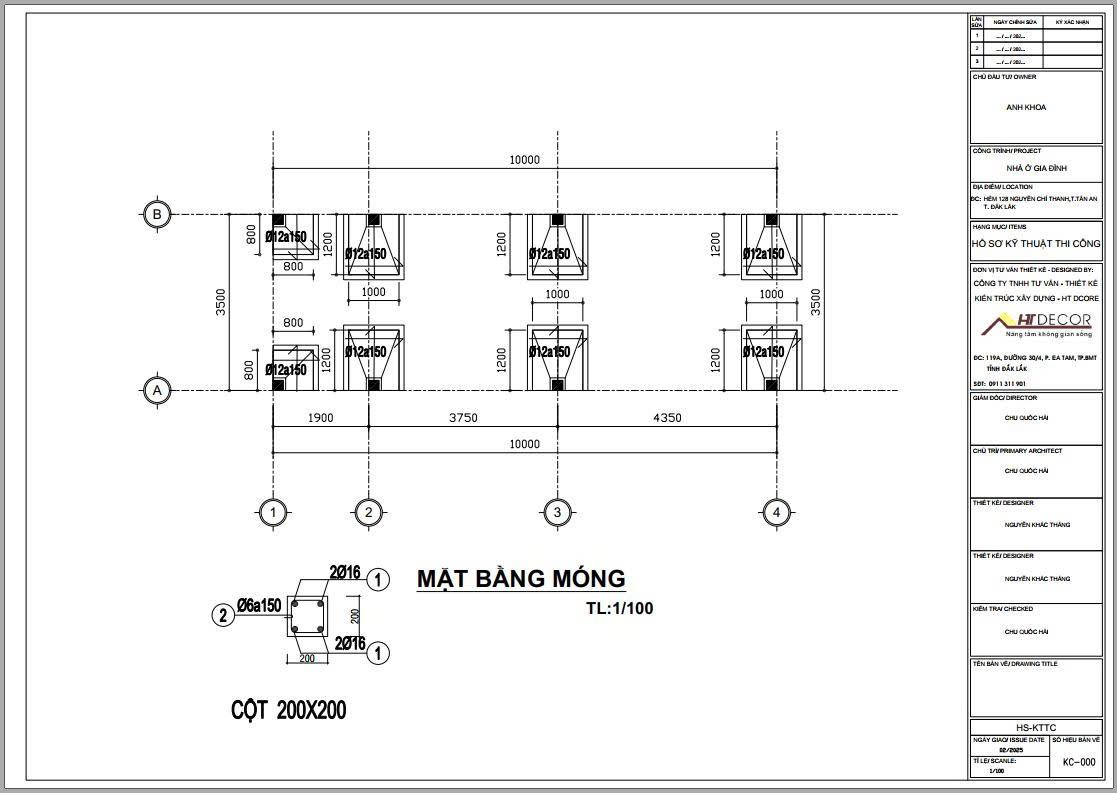 Với thiết kế kỹ thuật thi công nhà ở gia đình có gác lửng do HT DCORE thực hiện. Bộ bản vẽ thể hiện đầy đủ từ mặt bằng, móng, dầm – sàn cho đến khung kết cấu, đảm bảo công trình vừa khoa học, bền vững, vừa tiện nghi và thẩm mỹ.